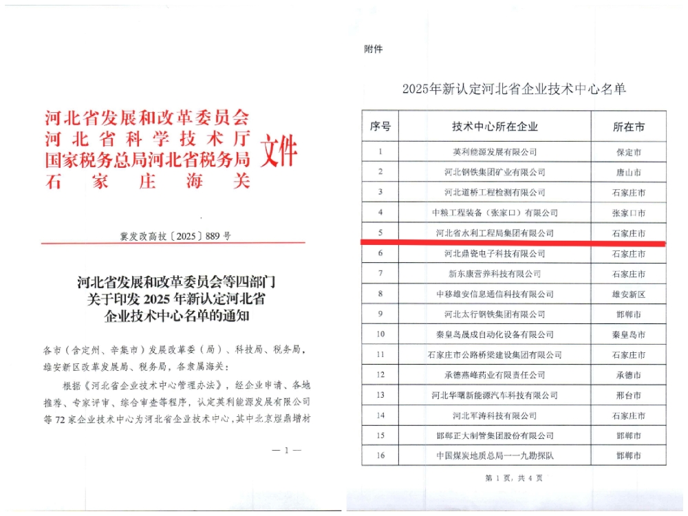 集團(tuán)水工局成功認(rèn)定河北省企業(yè)技術(shù)中心近日,河北省發(fā)展和改革委員會(huì)、河北省科學(xué)技術(shù)廳等四部門聯(lián)合發(fā)布2025年新認(rèn)定河北省企業(yè)技術(shù)中心名單,集團(tuán)水工局憑借卓越的技術(shù)創(chuàng)新能力與突出的業(yè)績(jī)表現(xiàn),成功認(rèn)定河北省企業(yè)技術(shù)中心。