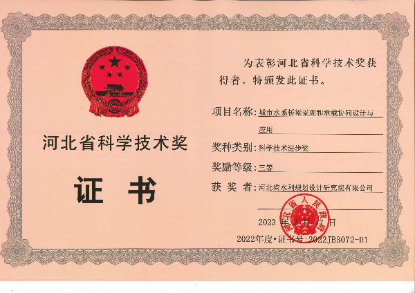 • 獲河北省水利學(xué)會科技進(jìn)步一等獎