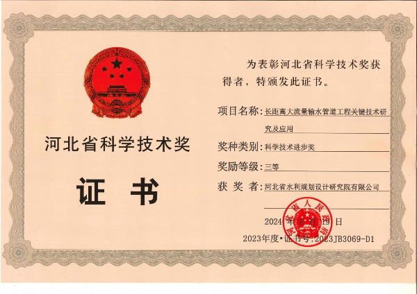 • 長距離大流量輸水管道工程關(guān)鍵技術(shù)研究及應(yīng)用項目獲三等獎