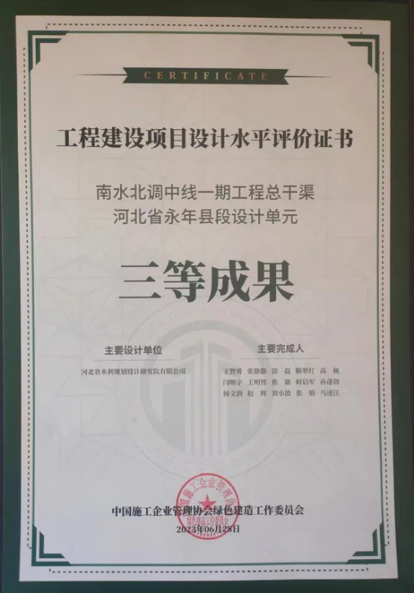 • 南水北調(diào)中線一期工程總干渠河北省永年縣段設(shè)計單元三等成果