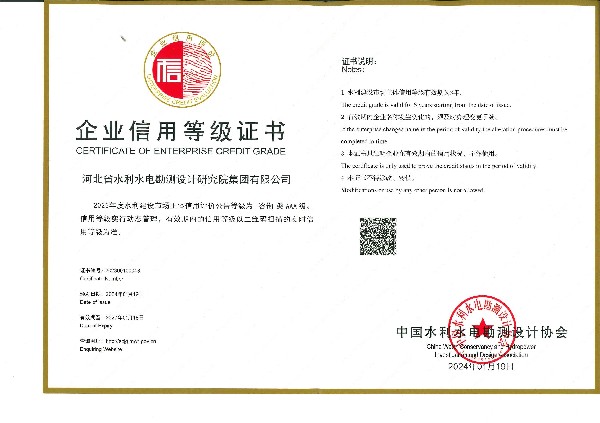 • 獲水利建設(shè)市場勘察類AAA主體信用評級