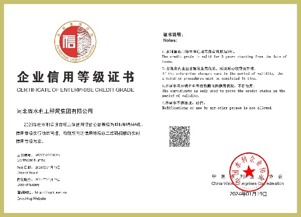 • 水利AAA信用等級證書(機(jī)械制造類)
