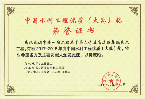 • 南水北調(diào)中線一期工程總干渠與青蘭高速連接線交叉工程榮獲大禹獎