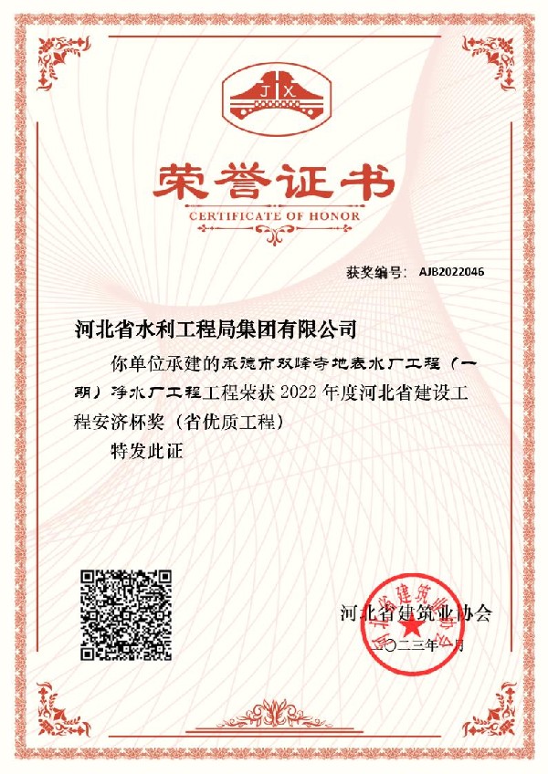 • 承德市雙峰寺地表水廠工程(一期)凈水廠工程榮獲安濟(jì)杯獎