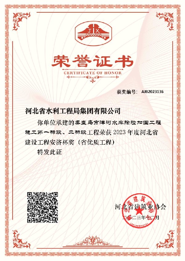 • 秦皇島市洋河水庫除險加固工程施工一、二標(biāo)榮獲安濟(jì)杯