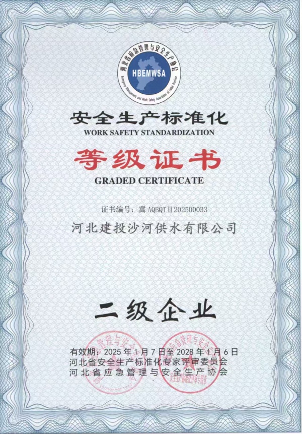 • 安全生產(chǎn)標(biāo)準(zhǔn)化等級證書