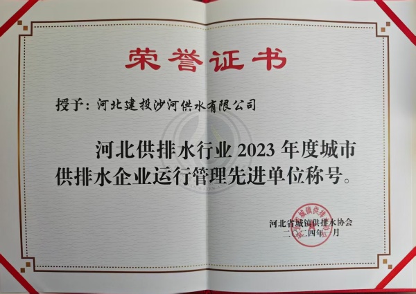 • 城市供排水企業(yè)運行管理先進(jìn)單位稱號