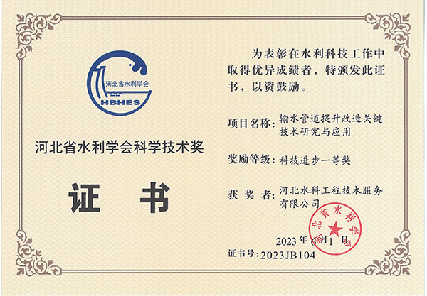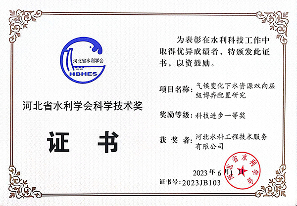 • 獲河北省水利學(xué)會技術(shù)推廣一等獎